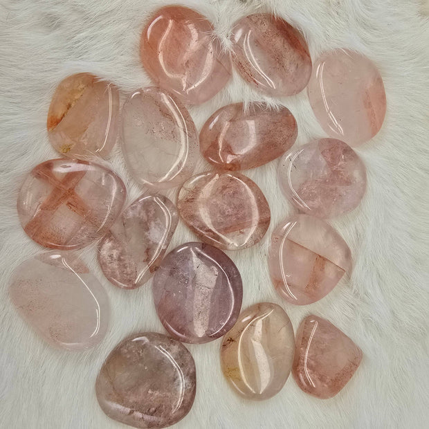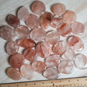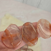 This listing is for a half kilo of palm stones. There are approximately 18 Pieces per .5 Kilos and they are from Madagascar. Fire Quartz, also known as Hematoid Quartz, is celebrated for its grounding and balancing energy. This stone is believed to enhance focus, dispel negativity, and boost self-confidence. It’s used in spiritual practices to stabilize emotions, clear the mind, and foster a sense of peace. Fire Quartz is thought to harmonize the root and sacral chakras, promoting a balanced connection between mind, body, and spirit. Scientifically, Fire Quartz is quartz (SiO₂) with inclusions of hematite (Fe₂O₃), giving it its distinctive reddish, flame-like streaks. The mineral has a Mohs hardness of 7.